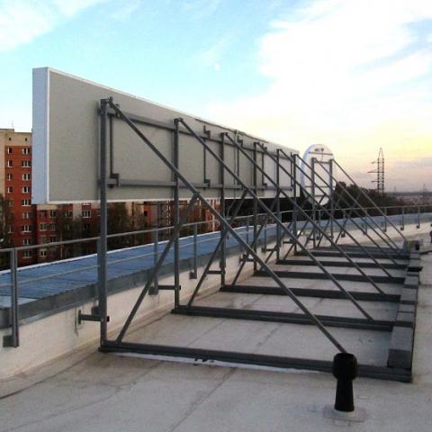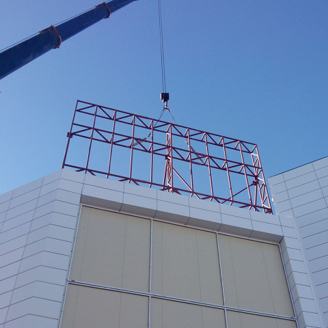 Крышные каркасы используют для установки крупных рекламных объектов, таких, как светящиеся логотипы и буквы на крышах домов.